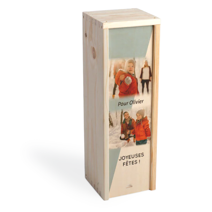 Utiliser votre coffret en bois personnalisé comme boîte de rangement, c'est super chouette ! Concevez un couvercle unique et ajoutez-y une belle photo ou le nom de la personne qui va l'utiliser. Les différentes polices de caractère dans l'Éditeur en Ligne vous permettent de le personnaliser davantage. Ce coffret est pratique en tant que boîte de rangement, mais également en tant que coffret-cadeau personnalisé. Ajoutez une bouteille de vin et voilà ! Un cadeau personnalisé unique dans un emballage plus original que du papier cadeau. Le couvercle est assez grand pour y imprimer une photo et un texte personnalisé. Le coffret peut par la suite être utilisé en tant que coffre à jouets ou boîte de rangement. Multifonctionnel !
