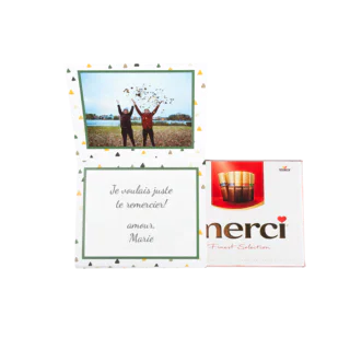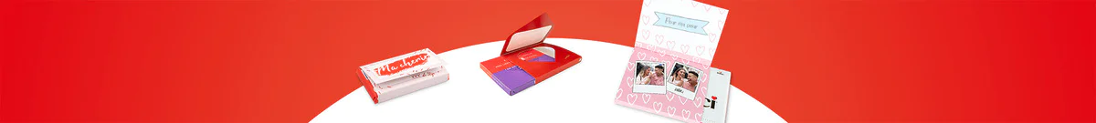 Dans l'Éditeur en Ligne vous pouvez créer votre propre emballage pour les chocolats, c'est rapide et facile ! Sélectionnez vos plus belles photos et ajoutez-y un texte personnel. Vous avez le choix entre les Tony's Chocolonely, une boîte de chocolats Merci ou une boîte en forme de coeur de chocolats Milka.