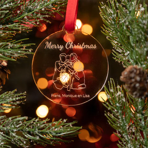 Suspension de Noël ronde gravure famille de Noël