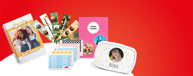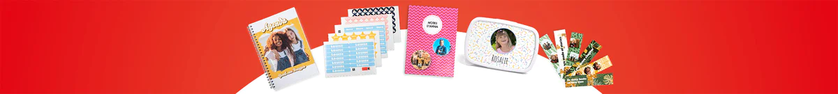 La rentrée avec les fournitures scolaires personnalisées. Choisissez un des produits ci-dessus et personnalisez-le facilement avec l’Éditeur en Ligne.